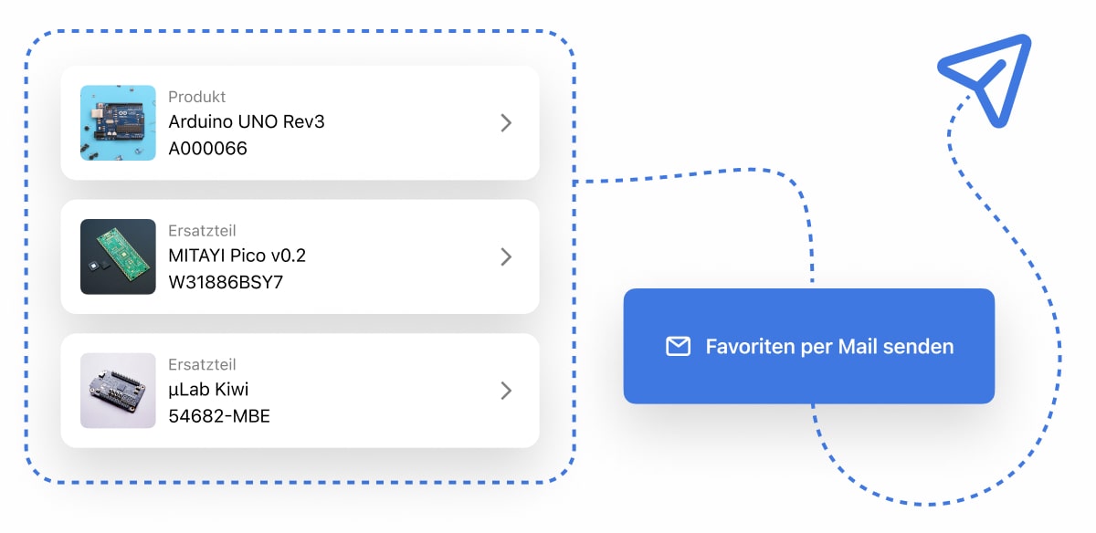 Dient als praktisches Merklisten-Feature, um Ersatzteile für spätere Prüfungen zu speichern oder mit weiteren Personen zu teilen.