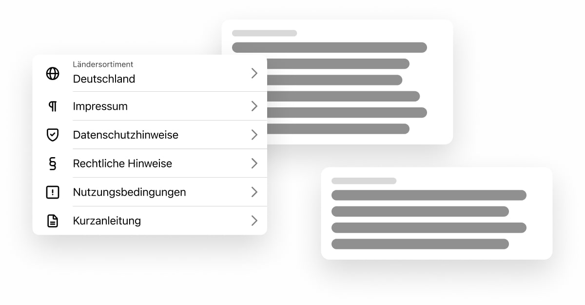 Im Infobereich können wichtige Informationen zum Datenschutz, den Nutzungsbedingungen, sowie einem Impressum und rechtlichen Informationen der App hinterlegt werden.